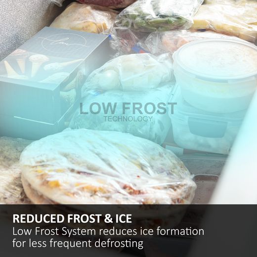 LowFrost значително намалява образуването на скреж и лед във фризерното отделение, което прави размразяването много по-рядко и лесно. Благодарение на специална технология, уредът поддържа равномерна температура и предотвратява натрупване по вътрешните стени. Това означава по-малко ръчна поддръжка и повече време за вас. Освен това, по-малкото скреж води до по-добра енергийна ефективност, тъй като уредът не трябва да работи на пълна мощност, за да охлажда. LowFrost също така удължава живота на съхраняваните храни, запазвайки ги при оптимални условия. Това е практично решение за всяко домакинство, което търси удобство и ефективност в едно.