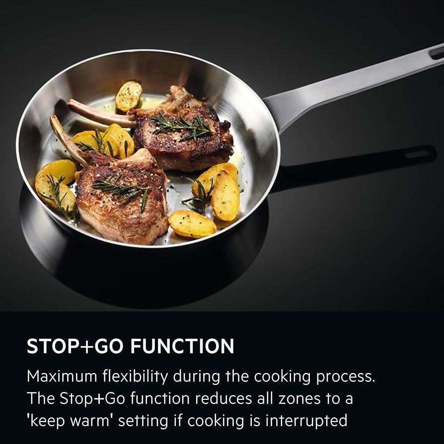 Stop+Go е практична функция, която ви позволява да поставите всички зони на пауза едновременно с едно докосване, например когато трябва да отговорите на обаждане или да напуснете кухнята за кратко.