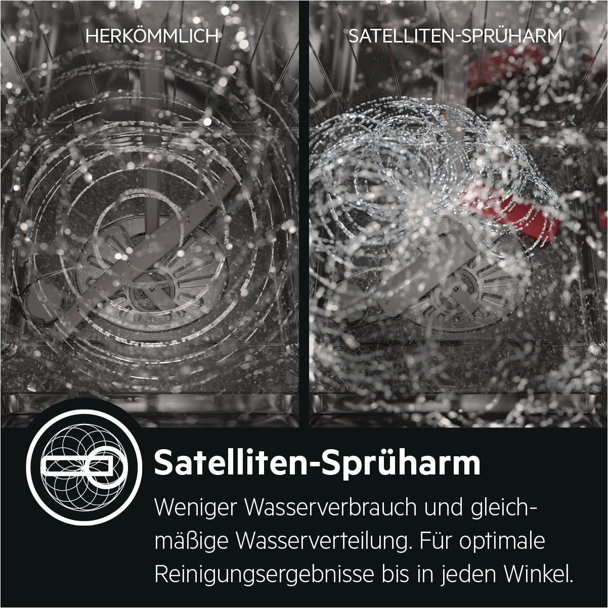 Системата SatelliteClean® използва специално разпръскващо рамо с двойно въртене, което достига до всички ъгли на съдомиялната машина. Това осигурява значително по-добро покритие с вода и по-ефективно почистване на съдовете.