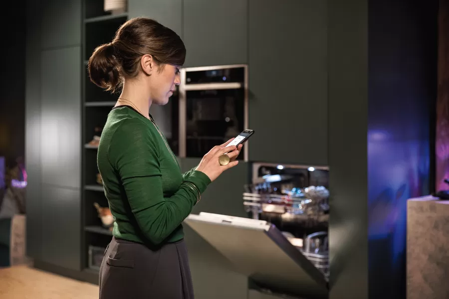 С функцията Home Connect можете да управлявате и следите съдомиялната дистанционно чрез мобилно приложение на смартфон или таблет. Това ви позволява да стартирате, спирате и програмирате измиване по всяко време, независимо къде се намирате. Благодарение на интеграцията с гласови асистенти като Amazon Alexa, управлението е още по-интуитивно и удобно. Приложението предлага и интелигентни съвети за поддръжка, избор на програми и известия за необходимост от добавяне на сол или препарат. Home Connect превръща ежедневното измиване на съдове в смарт изживяване с пълен контрол и гъвкавост.