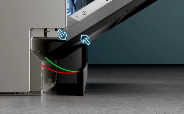 varioHinge е уникална система за монтаж, която позволява плавно движение на мебелната врата при отваряне. Благодарение на специалната плъзгаща конструкция, вратата се приплъзва леко надолу, без да закача цокъла или съседните шкафове – идеално решение за кухни с ниска основа. Това улеснява интегрирането на съдомиялната в различни типове мебели и осигурява изчистен външен вид. Движението е плавно и стабилно, което предотвратява износване на пантите и повреждане на мебелния фронт. varioHinge е пример за немски инженеринг, който съчетава функционалност и естетика.
